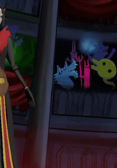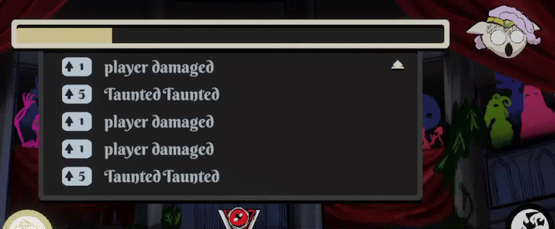 The third important element was the skill bar. The original plan was to fit it horizontally on the bottom, but we didn’t end up having enough space there. I decided to slot it next to the boss, aligned vertically and split into two columns, but I didn’t enjoy how that obscured the view of the background. I decided to have the entire skill bar collapse and hide behind the boss when it was the heroes’ turn, which also served as a nice secondary indicator of when the player had actions to take. At that point, it was just a matter of adding some highlighting for the currently selected ability and adding fade-outs for conditional abilities when they weren’t active and a little attention-grabbing wiggle for when they were.