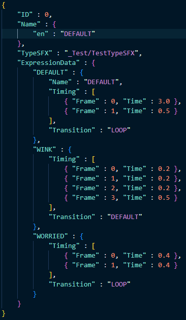 Speaker data are stored in their own JSON files, and contain animation frame data as well as the type sound for their dialogue among others. The portraits are automatically loaded, split, and animated based on this data.