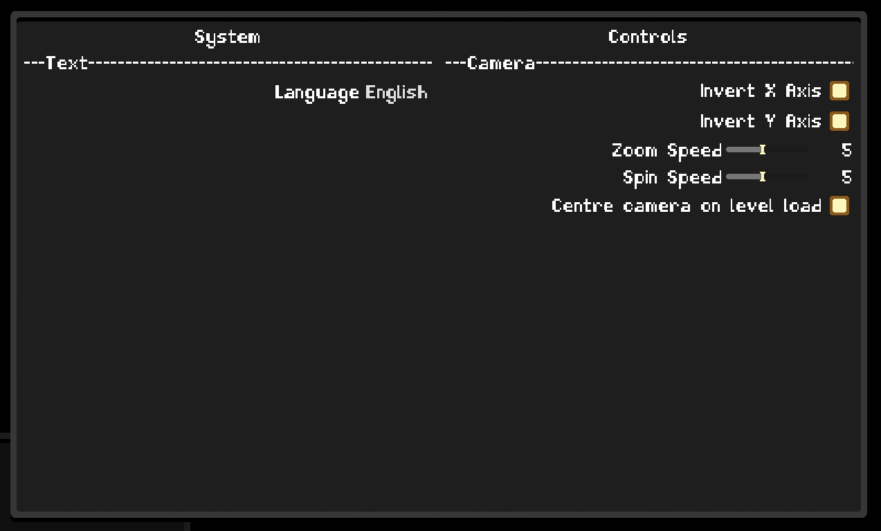 Aside from the gameplay, I have also implemented dynamic settings modules. I pre-created several modules based on the type of input (checkbox, slider, dropdown…), and only needed to drag a given module into the settings and give it a name that was equal to a config setting in the files (additionally allowed values if I needed it). The system then automatically gave it a name and default value, and connected it via signals to change the linked config value when the player interacted with it.